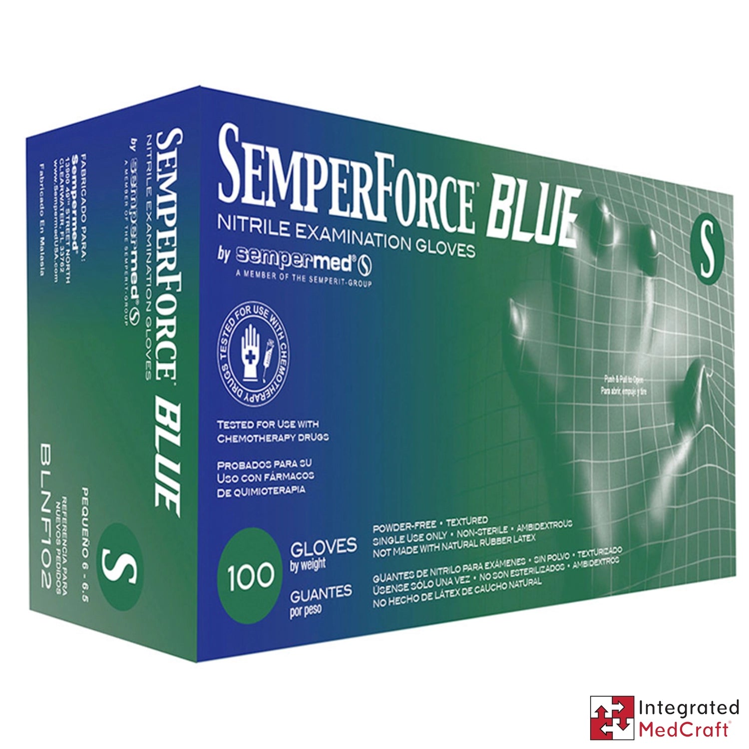 SEMPERFORCE TEXTURED NITRILE EXAM GLOVES, SM, 100/BX IMC-BLNF102-EA |